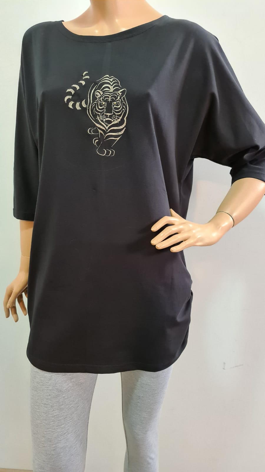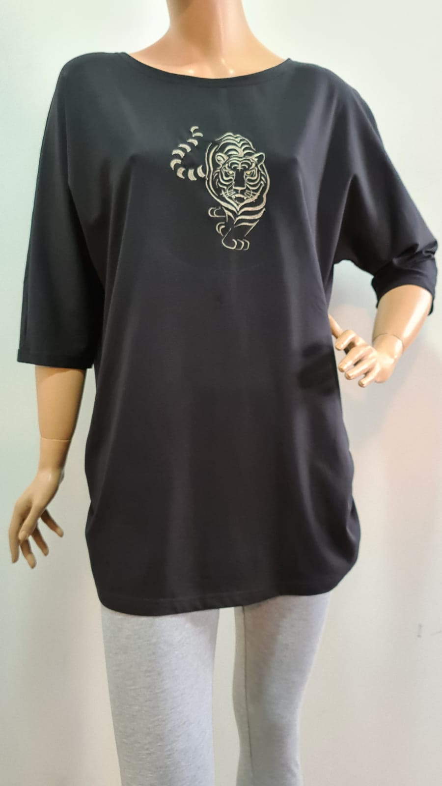 Ženska tunika lijepog kroja u crnoj boji, sa koncem izvezenim motivom tigra